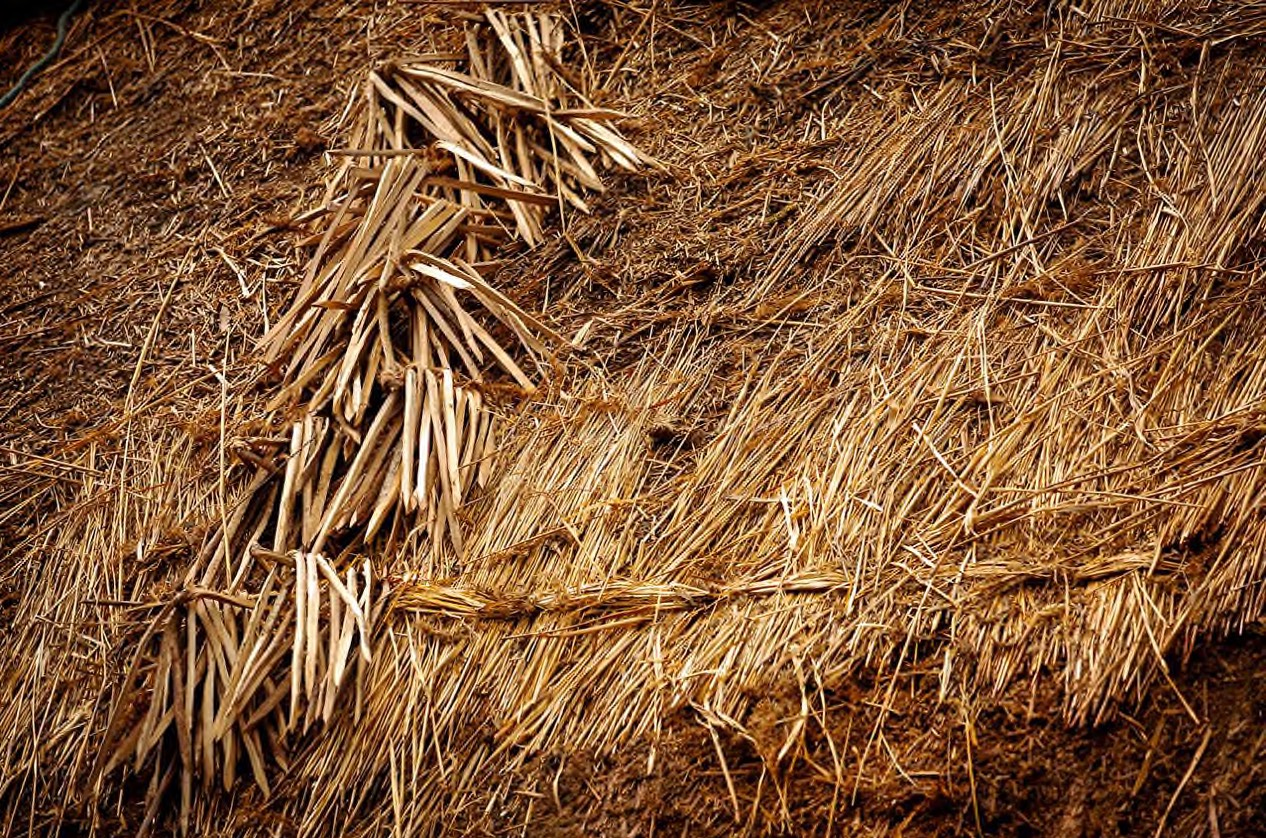 thatch, a minimal amount of decayed material is stripped back to reveal the